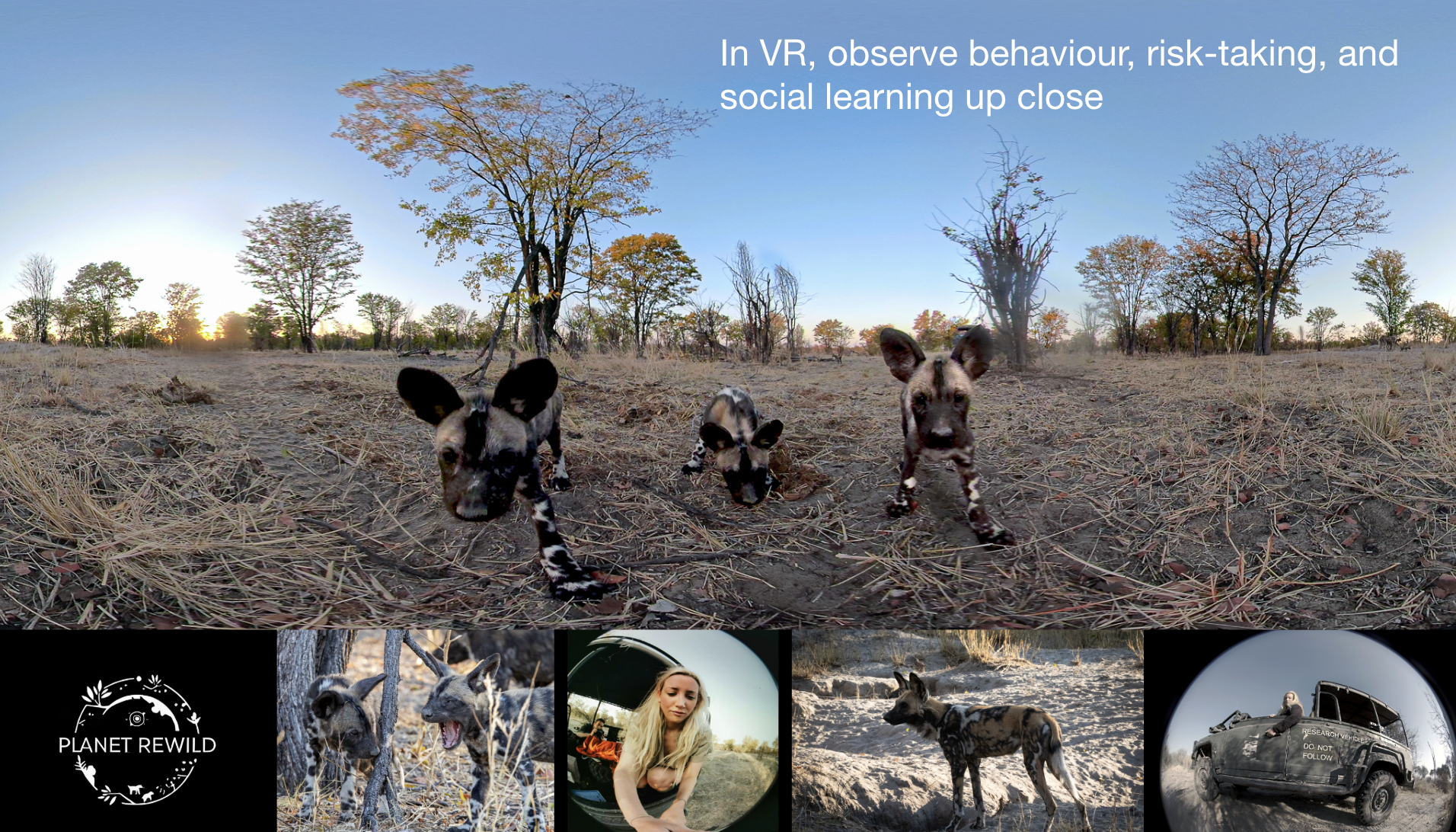 Selected sequences from the Okavango expedition - including wild elephants on the savannah, hippos at dawn, and African wild dog pups during an evening rally - are now licensed for educational use on the immersive learning platform ThingLink enabling students and educators to explore these ecosystems through interactive VR experiences.